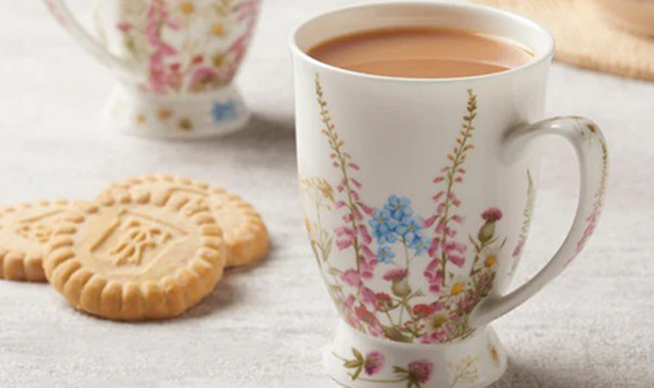 英国定番のボーンチャイナです。 とても軽く、持ちやすく、飲みやすく、 紅茶商のティーグッズは進化しています。 ボーンチャイナは、紅茶の水色が とても美しく見えるだけでなく、 軽くて丈夫な上、高級感があり、 紅茶好きの必須アイテムです。 ボーンチャイナで飲む紅茶の 口当たりはとても滑らかなんです。 スルスル飲めるリントンズ紅茶が もっと滑らかに上品に感じると思います。 このマグの形もリントンズらしいデザイン。 “British Wildflower”。 ミニマルな花柄デザインが 今の英国トレンドを意識したデザイン。 紅茶やお菓子も素敵に引き立ててくれそうです。