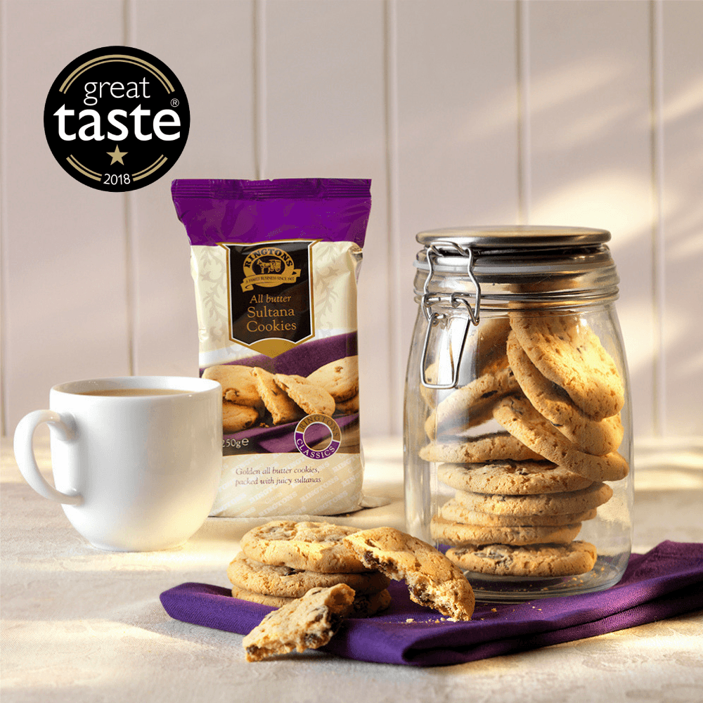 ジンジャービスケット、ショートブレッドに並ぶくらい人気のあるイギリスのリントニアンに聞いても「サルタナ」は定番商品です。英国産の小麦粉に、高級バターもたっぷり。そして、英国菓子に かかせない英国産のゴールデンシロップも入っています。その英国感満載のクッキー生地に、ドライフルーツのサルタナを混ぜたショートブレッドタイプのビスケットです。サルタナのおかげで、フルーティーなバタークッキーに。リントンズのお菓子の中では甘めのビスケットですが、無糖ミルクティーに最高に合います。英国流にダンキングもおすすめです。