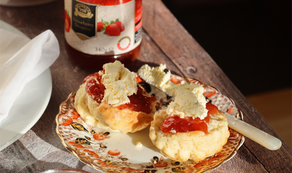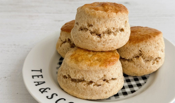 「イギリスで食べるような“スコーン”を自宅で作りたい」と北海道の製粉会社と共同開発で、リントンズの完全オリジナルのスコーンミックスを製造しました。リントンズのスコーンミックスがあれば、スーパーでも簡単に揃う「バター、牛乳、卵」でいつでも出来たての英国スコーンを食べられます。スコーンの味を決めるうえで最も重要な小麦粉はスペルト小麦の石臼挽きの全粒粉を使っています。石臼で挽くことで手間暇はかかりますが、イギリスの小麦粉のように粒子が均一にならず、それが小麦の味が単調にならない魅力にもなるそうです。さらに「キタノカオリ」をブレンドすることに。キタノカオリのその風味はスペルト小麦粉との相性が抜群でした。さらに、イギリスでもスコーンに使われるバターミルクも配合。バターミルクが入ったスコーンは一層ふんわりとした食感に。お家でもイギリスで食べるような美味しいスコーンを再現できるように、スコーンに合う粉を探して、それらをブレンドして、粉をふるい、バターミルク、グラニュー糖、ベーキングパウダーなどの材料を揃えて、それらを絶妙な量で配合、計量するところまでのすべてを、粉のプロフェッショナルである製粉会社のノウハウを結集して仕上げてくれています。それが「リントンズのスコーンミックス粉」です。